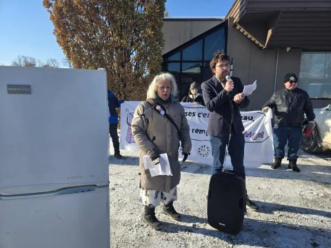 Selon Natacha Nadeau, militante à l’ADDS Rive-Sud, « les personnes assistées sociales le savent bien, les questions de pauvreté et d’aide sociale sont souvent les questions les plus invisibles lors des campagnes électorales au Québec. Il faut s’y prendre à l’avance pour faire valoir notre point ! » Des militant·e·s, des citoyen·ne·s et plusieurs groupes communautaires alliés se sont donc rassemblé·e·s et ont embarqué dans l’autobus de campagne afin de visiter, avec un frigo vide, quatre bureaux des principaux partis politiques. Par cette action, les groupes ont voulu lancer un message clair : « Vos promesses, c’est bien beau, mais ça ne remplit pas le frigo ! »