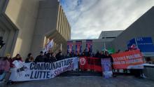 Québec, 15 mars 2026 - Profitant de l’occasion de la Journée internationale contre la brutalité policière, la Coalition pour le droit de manifester à Québec et ses allié·e·s ont pris la rue pour dénoncer les pratiques policières entretenant du profilage racial, social et/ou politique ainsi que le port de la Thin blue line sur l’uniforme des représentant·e·s des forces de l’ordre.