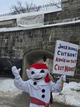 Québec, le 7 février 2026– Le Comité populaire Saint-Jean-Baptiste (Compop) organisait cet après-midi une action de visibilité visant le manque de logements sociaux dans le faubourg et dans la ville de Québec plus largement. Profitant de l’ambiance carnavalesque qui envahit actuellement la Haute-Ville, les militant·e·s se sont rassemblé·e·s sous le thème « Jouer dehors c’est bien, avoir un toit, c’est mieux! ».